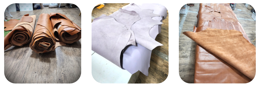 KANDOGの革の選別基準は、まず柔らかさと丈夫さであり、次に色合いや色移りの心配のない安全性です。革に関しては厳格な基準で手触り、色合い、質感、引張強度を全て確認した上で入庫するほど、革の選別には厳しいです。